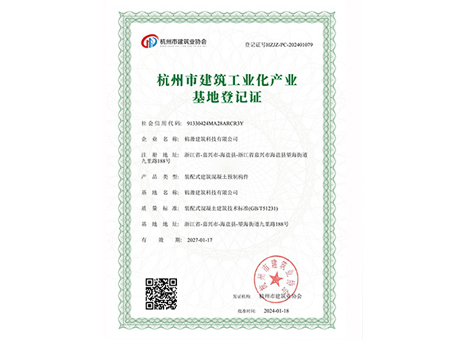 杭州市建筑工業(yè)化產業(yè)基地登記證
