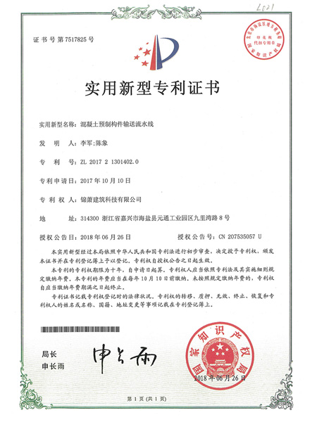 專利證書--輸送流水線