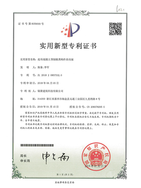 專利證書--吊具