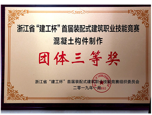 浙江省“建工杯”競(jìng)賽構(gòu)件制作團(tuán)體三等獎(jiǎng)