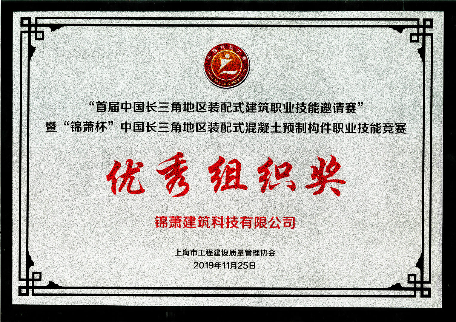 錦蕭杯中國(guó)長(zhǎng)三角地區(qū)裝配式混凝土預(yù)制構(gòu)件職業(yè)技能競(jìng)賽優(yōu)秀組織獎(jiǎng)
