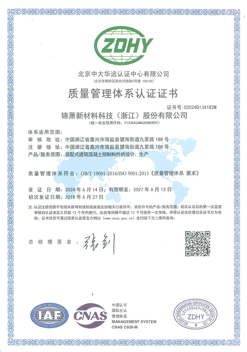 質(zhì)量管理體系認(rèn)證證書
