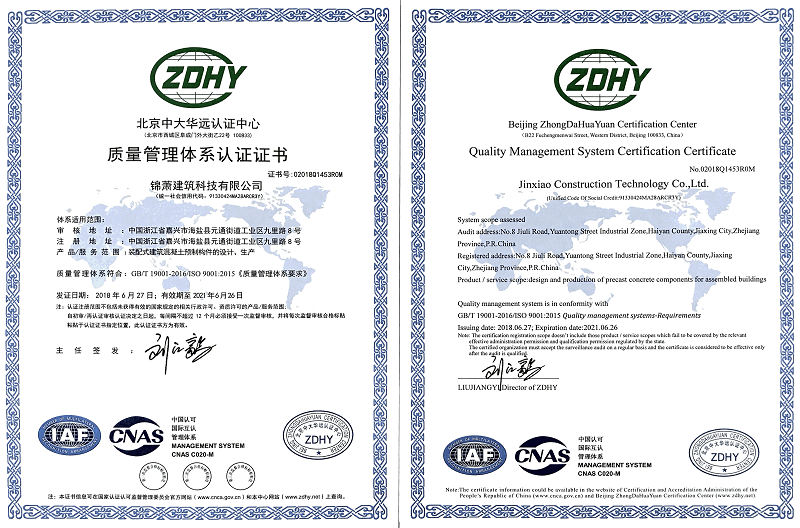 近日,錦蕭建筑科技有限公司正式通過了ISO9001:2015質(zhì)量管理體系認(rèn)證,并獲得認(rèn)證證書,這標(biāo)志著公司在產(chǎn)品研發(fā)設(shè)計(jì)、生產(chǎn)及銷售服務(wù)方面已達(dá)到國際化標(biāo)準(zhǔn),獲得了國際權(quán)威組織的認(rèn)可。