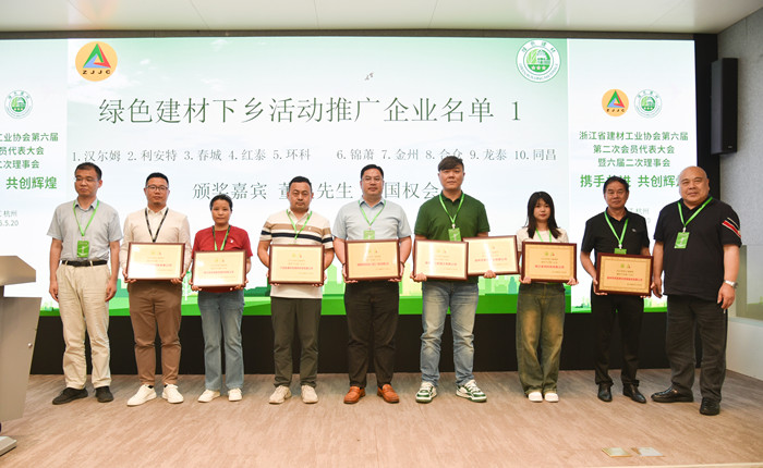 近日,浙江省建材工業(yè)協(xié)會第六屆第二次會員代表大會暨六屆二次理事會在杭州順利召開,會上公布了“2025年浙江省綠色建材下鄉(xiāng)推廣企業(yè)”名單并頒發(fā)獎牌,錦蕭科技榜上有名。