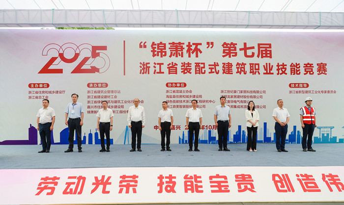 本次大賽由浙江省住房和城鄉(xiāng)建設(shè)廳、浙江省總工會(huì)主辦,浙江省建筑業(yè)管理總站、浙江省建設(shè)建材工會(huì)、浙江省綠色建筑與建筑工業(yè)化行業(yè)協(xié)會(huì)、嘉興市住房和城鄉(xiāng)建設(shè)局、錦蕭新材料科技(浙江)股份有限公司共同承辦。