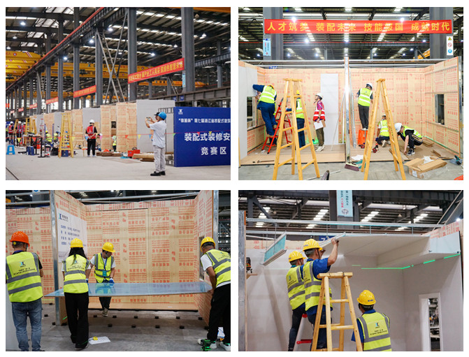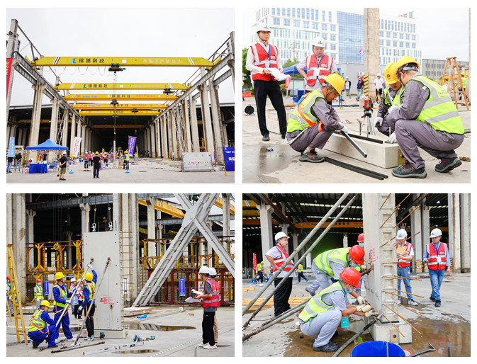 本次競(jìng)賽包括理論考試和實(shí)操考核兩個(gè)部分,理論考試占總成績(jī)的30%,實(shí)際操作占總成績(jī)的70%。開幕式后,緊張激烈的實(shí)操考核正式拉開帷幕,參賽選手們按序就位,迅速投入到各自的“戰(zhàn)場(chǎng)”。從材料到成品,是一次對(duì)參賽選手技能水平的大檢閱,也是一次促進(jìn)技藝提升的展示交流,展現(xiàn)了裝配式建筑產(chǎn)業(yè)工人各個(gè)工種的技藝魅力。