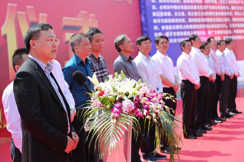 錦蕭科技董事長李軍介紹投資興建"年產70萬立方米建筑裝配式預制構件生產建設項目"是積極響應國家發(fā)展綠色建筑業(yè)的號召,項目總投資為8.05億元,新征建設用地152601平方米,工廠生產及配套用房建筑面積8.8萬平方米,擁有10個車間,成品堆場面積為8.34萬平方米,并配備運輸碼頭一座,建成后年產量最大達70萬立方米,將成為目前國內單個最大的裝配式PC構件生產基地,產品會覆蓋上海、蘇州、嘉興、杭州、紹興、寧波等長三角地區(qū),并對前來參加奠基儀式的各位領導和各界朋友表示衷心感謝,作了歡迎詞。