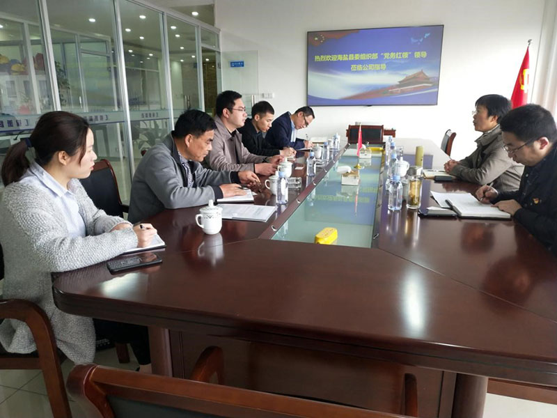 2019年04月02日上午,海鹽縣委組織部副部長(zhǎng)夏一飛、組織部?jī)尚驴瓶崎L(zhǎng)朱世鵬、望海街道黨委組織委員繆李偉,”黨務(wù)紅領(lǐng)‘’富雪祥一行蒞臨公司指導(dǎo)工作。