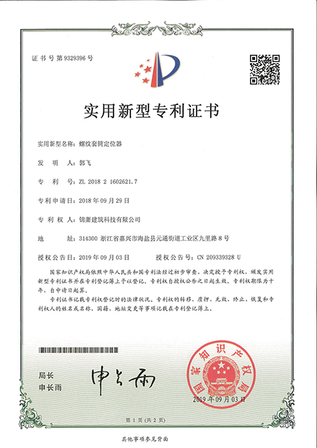 專利證書(shū)--螺紋套筒定位器